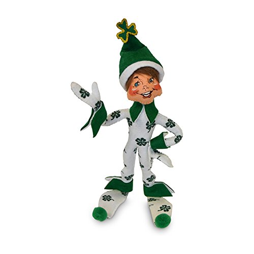 - This 9 inch white elf is done in a whimsical style. It has shamrocks printed on its body and Kelly green wrist and ankle cuffs.