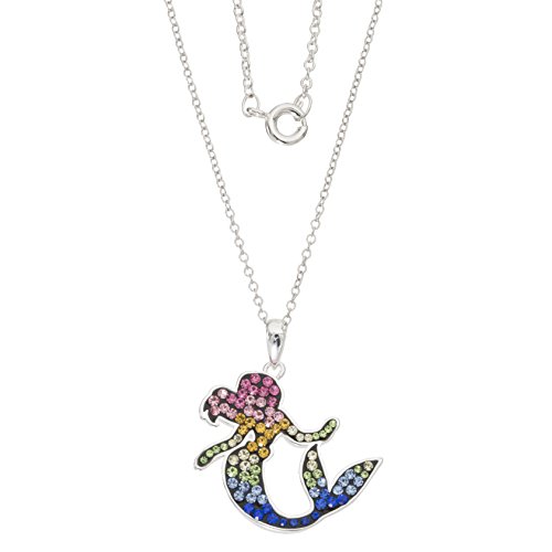 Officially Licensed Disney The Little Mermaid Silver Plated Brass Crystal Pendant Necklace, 18" Disney The Little Mermaid Silver Plated Brass Multi Rainbow Crystal pendant necklace is finished in silver plated brass, this necklace is complete with an 18 inch chain with a spring ring clasp. Disney The Little Mermaid Silver Plated Brass Crystal Pendant Necklace comes gift boxed making for a perfect gift for any women including your daughter, sister, granddaughter, niece or any loved one.Feature