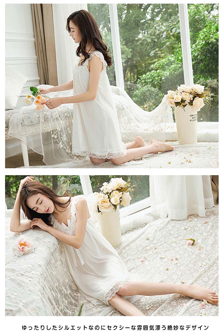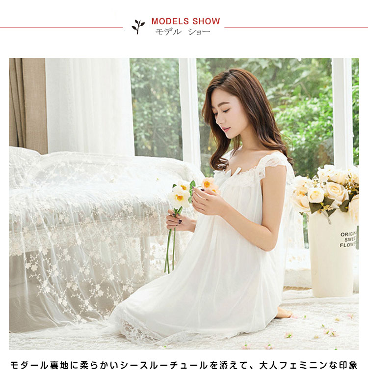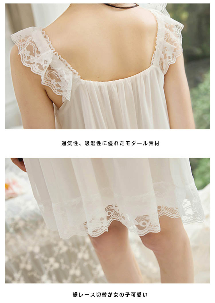 | シンプルセクシーなキャミソールパジャマ♪モダール裏地に柔らかいシースルーチュールを添えて、大人フェミニンな印象。軽やかなレースフリルが乙女の甘いテイストを溢れ、女の子可愛い。ゆったりしたシルエットなのにセクシーな雰囲気漂う絶妙なデザイン肩レースフリルをあしらい、ちょっぴり甘いテイストが溢れています。 | |