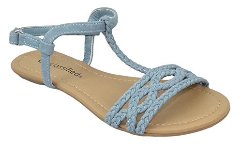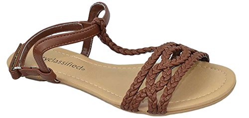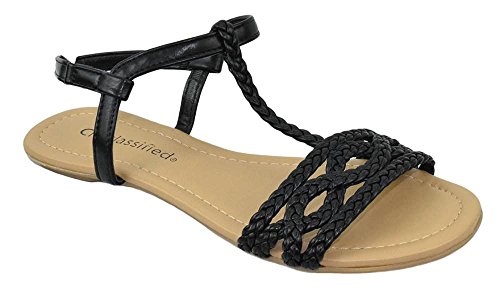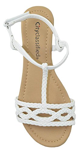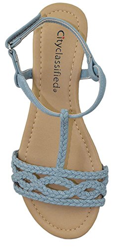City Classified Women Shoes Flat Sandals Velcro Ankle T-Strap Braided Slingback ENNIS