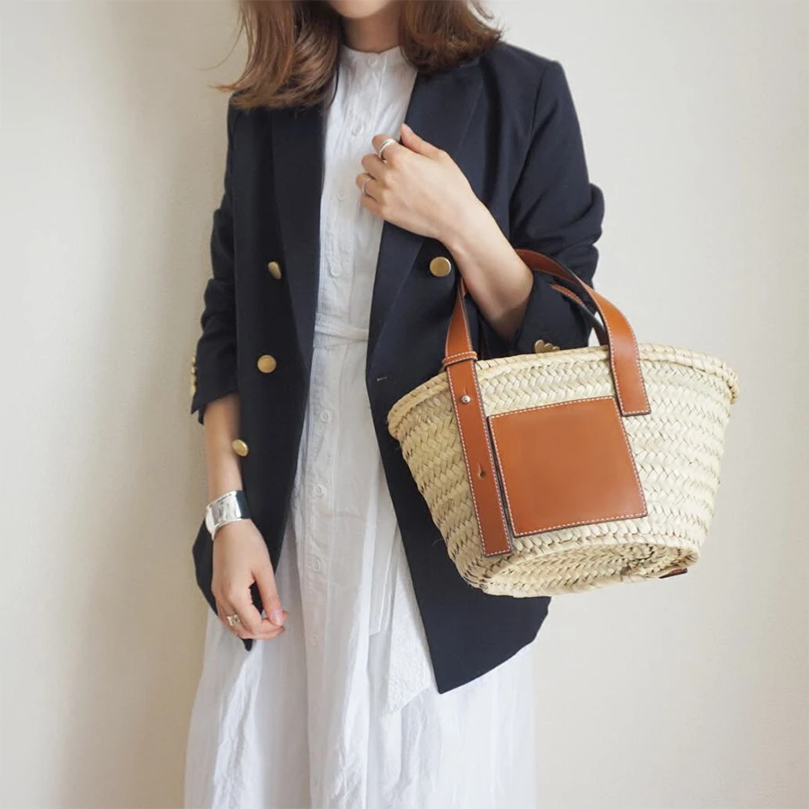 Type:Bucket,Casual Tote,Handmade Woven Straw Bags,Beach Bags