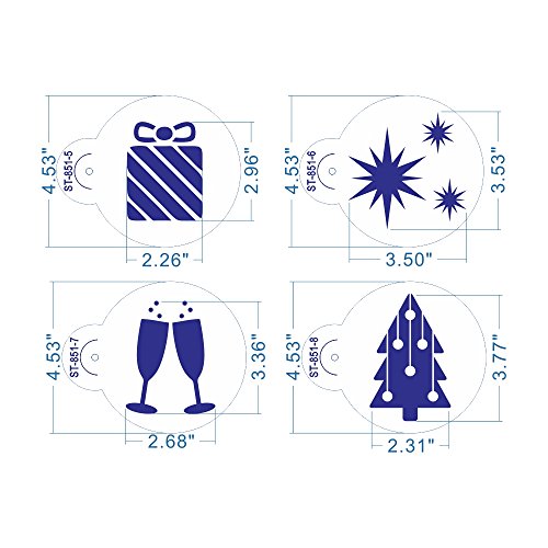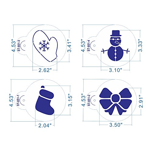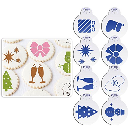 ART Kitchenware 4.53inch 8pcs Christmas Tree Cake & Cookie Stencil Set Cupcake Decoration Plastic Stencils for Cake (Gifts ,Snowman,Socks,Knots,Snowflakes) ST-851 Beige/Semi-Transparent