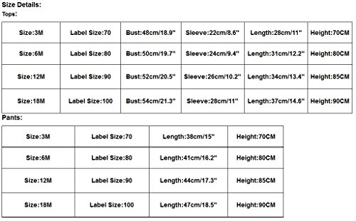 -. Feature : Material:Cotton Blended / Sleeve Length:Long Sleeve ; / Szie: 3 months ; 6 months; 12 months ; 18 months ; Pls read the size chart LEFT carefully before you place order / Season for Autumn, Winter and SP.R.Ing / Package include:1PC Shirt +1PC Pants+1PC Hat