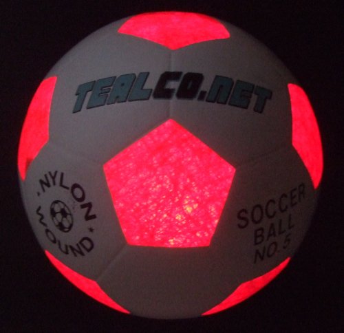 -. Binding : Misc. -. Brand : TealCo -. EAN : 0639767425414 -. Feature : Standard Size 5 / Bright, internal LED lighting makes the whole ball glow like neon at night! / Batteries included and easy to change! / Great gift for anyone who likes playing soccer! / FREE extra LED light and FREE extra batteries! -. IsAutographed : 0 -. IsMemorabilia : 0 -. Label : TealCo -. Manufacturer : TealCo -. PackageQuantity : 1 -. ProductGroup : Sports -. ProductTypeName : SPORTING_GOODS -. Publisher : TealCo -. Size : 5 -. Studio : TealCo -. Title : Light-up TealCo Soccer Ball - Led-lighted Glow in the Dark, Full Size 5, Extra Light and Extra Batteries Included -. UPC : 639767425414