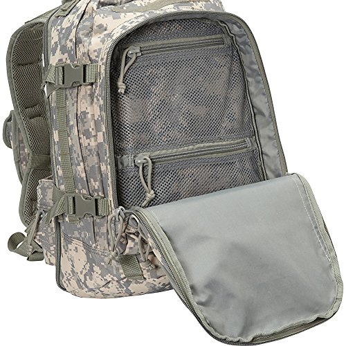-. Binding : Sports -. Brand : Fox Outdoor -. Department : unisex-adult -. Feature : One main compartment with large pocket ideal for hydration bladder or laptop / Secondary compartment with dual mesh pockets / Front compartment with a multitude of accessory pockets / A fully padded back panel with compartment pocket that is suitable for a laptop or hydration / Heavy duty zippers with pull cords -. Label : Fox Outdoor Products -. Manufacturer : Fox Outdoor Products -. Model : 56-564-P -. PackageQuantity : 1 -. ProductGroup : Sports -. ProductTypeName : SPORTING_GOODS -. Publisher : Fox Outdoor Products -. Studio : Fox Outdoor Products -. Title : Fox Outdoor Products Tactical Duty Pack