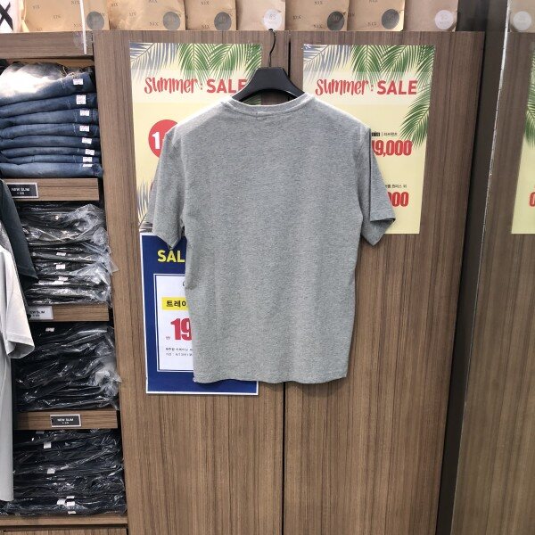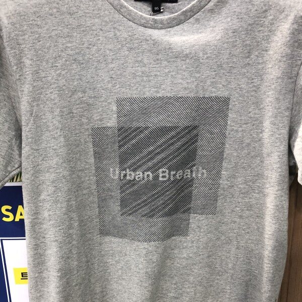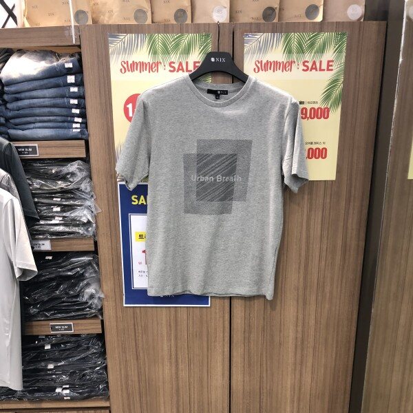 박스프레임 두개를 겹친 모던한 느낌의 아트웍이 들어간 라운드넥 티셔츠