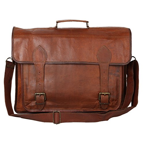 -. Feature : Product Dimension is Approx : 18 x 5 x 13 Inch In Width* Depth* Height ; Product Weight :1410 Gram ; Eco-Friendly / Compartments : 5, Outer Pockets : 1, Lock Type : Buckle Closure, Adjustable Shoulder Strap : Yes, Outer Material : Leather, Inner Material : Canvas, Top Handle : Yes. / PLEASE Note: These are not colored bags and shades are given through a natural and traditional process using vegetable oil and sun tanning, so the color will differ from the one pictured here. Every bag has a slightly different shade. / NOTE: Leather bag have a distinctive SMELL that fades away with days of use. Most of our customers tend to like this earthly smell, some don't. / Please Read Carefully--1.Pure leather, by nature, has some scars (due to markings/cuts on goat skin) which reconfirms that the leather is 100% genuine.2.Each leather product has a distinctive color tone, which may be different from shown images.The new leather product may have a distinctive leather smell. It will fade away within 3-4 weeks of regular use.