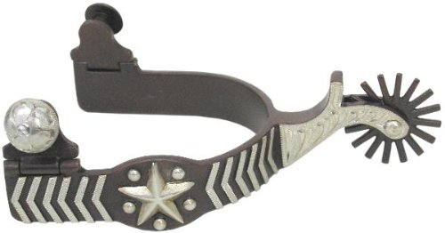 Product DescriptionAntiqued Show spurs with a 3/4" Blued steel band, hand engraved silver overlay. Shank is a 1 3/4" Chap Guard style with a 1 1/4" dia., 16 pt rowel.0