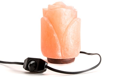 100% Authentic Natural Himalayan Salt Lamp; Hand Carved Flower Rose in Pink Crystal Rock Salt from the Himalayan Mountains; Hand Crafted Wood Base, UL-listed Dimmer Cord