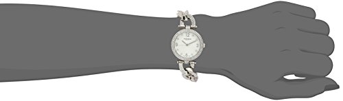 -. Feature : Silver-tone watch featuring textured dial with eight crystal hour markers, crystal-accented twisted chain bracelet, and crystal-covered bezel / Swiss quartz movement with analog display / Protective mineral crystal dial window / Features jewelry clasp closure / Not water-resistant
