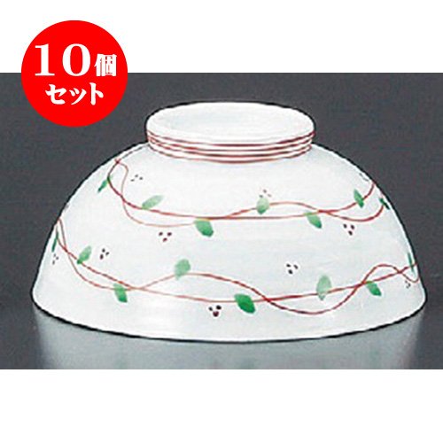 원본상품명: 10個セット 飯碗(磁器)?化 赤?つる草飯碗 [113 x 53mm] ?化 和食器 料亭 旅館 ?食店 業務用