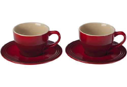 대인기 해외 직수입 르쿠르제 키친 용품 정규품 미발매 병행수입 남비요리 키친 웨어 홈 Le Creuset Stoneware Set of 2 Cappuccino Cups and Saucers, Cherry【