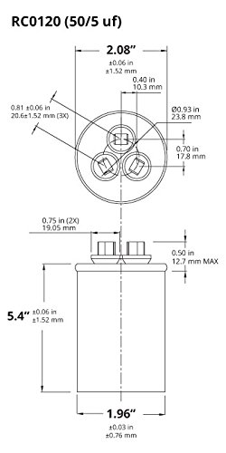TEMCo Dual Run Capacitor RC0120 - 50/5 mfd 370 V 440 V VAC volt 50+5 uf AC Electric Motor HVAC