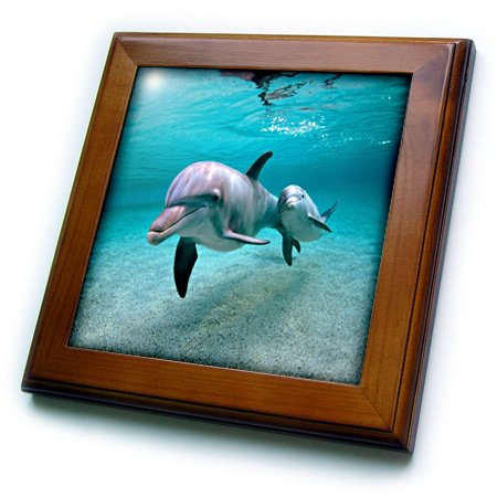 3dRose ft_174377_1 Image of Mama and Baby Dolphins Underwater-Framed Tile Artwork, 8 by 8-Inch