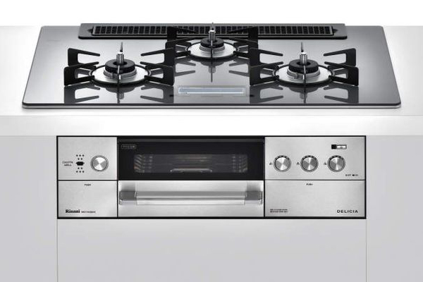 ●キッチンをもっと美しくするデザインで、キッチンと一体化するベベルカットのガラストップが、すっきりとフラットなデザインを演出。
