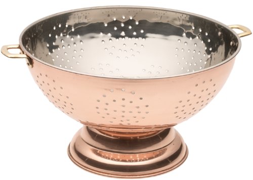 -.Comes with protective coating that prevents tarnishing / 12-inch copper pedestal colander / Lined with nickel and adorned with traditional brass handles / Attractive enough to serve as a display or centerpiece / Comes with protective coating that prevents tarnishing