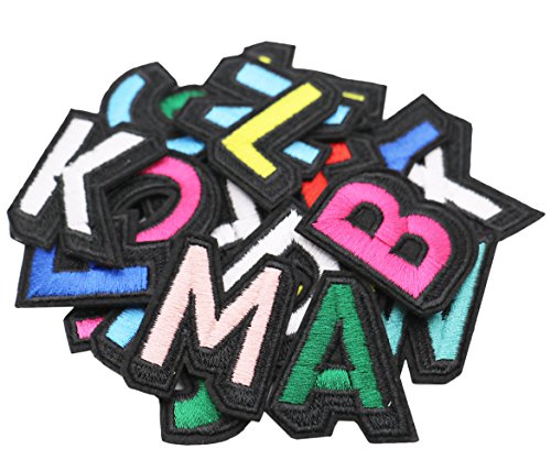 SOOKOO 26PCS Alphabet Letter Patches Embroidered Iron On Patch Appliques Decorative Repair Patches DIY Sew on Patch for Jeans, Clothing