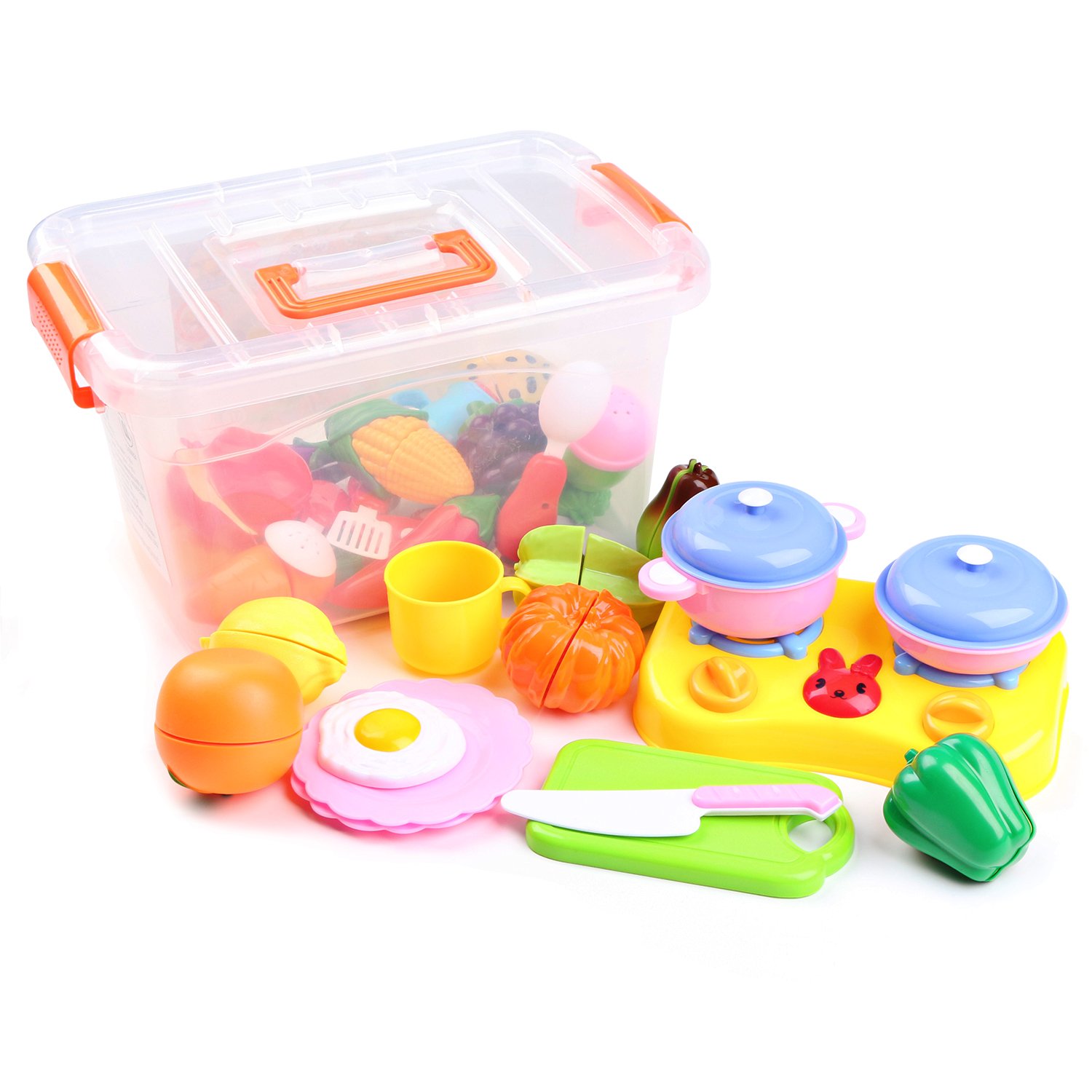 Kitchen knife is made of plastic, all corners are rounded, there is no worry of injuring your baby, you can play freely even for small children.