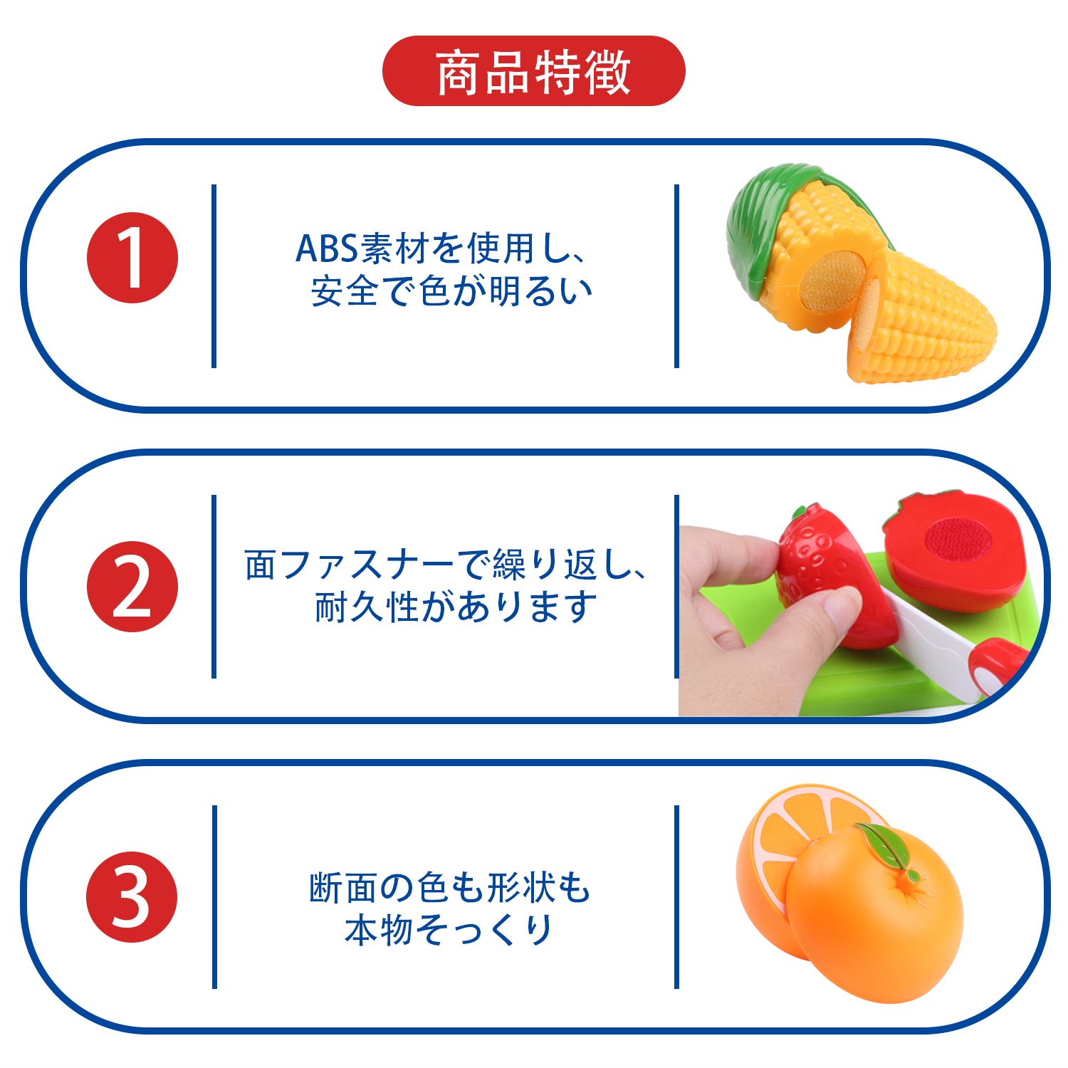 Velcro stickers are attached, children can easily cut with the attached kitchen knife.
