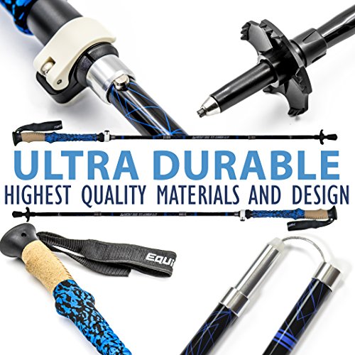 WE'VE GOT YOUR SAFETY & HEALTH COVERED: As most seasoned trekkers know, when you go downhill your knees, ankles and feet take on the pressure of the incline. The ergonomically created Equipeak Poles reduce vibration and shock while maintaining a firm grip. The EVA grip sets the correct angle for climbing efficiency too. The handle grip is made from real cork and the adjustable safety lanyard includes a soft cloth layer for added comfort.