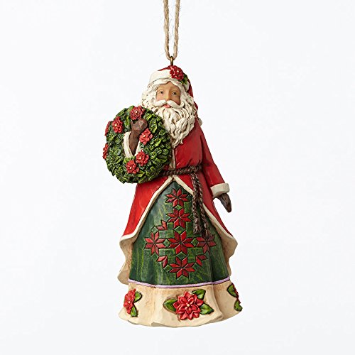 -. Feature : Enesco / Jim Shore Heartwood Creek Floral Poinsettia Santa Christmas Ornament 4053834 New