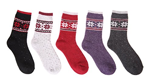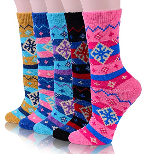 -. Title : EBMORE Women Fashion Casual Snowflake Warm Crew Wool Cotton Winter Socks 5 Pack