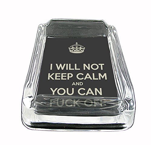 -. Title : I Will Not Keep Calm Funny Glass Square Ashtray