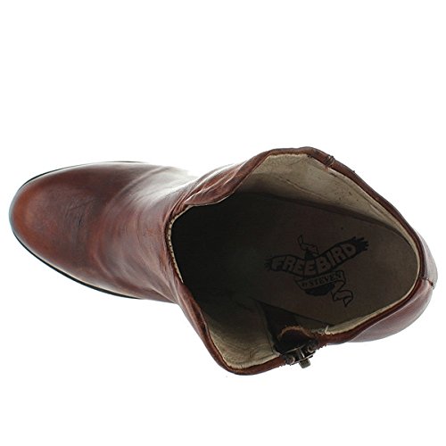 Product DescriptionDistressed nubuck and a worn, stacked heel give these FREEBIRD by Steven booties a rugged look. Low, notched shaft with exposed side zip. Leather sole.0