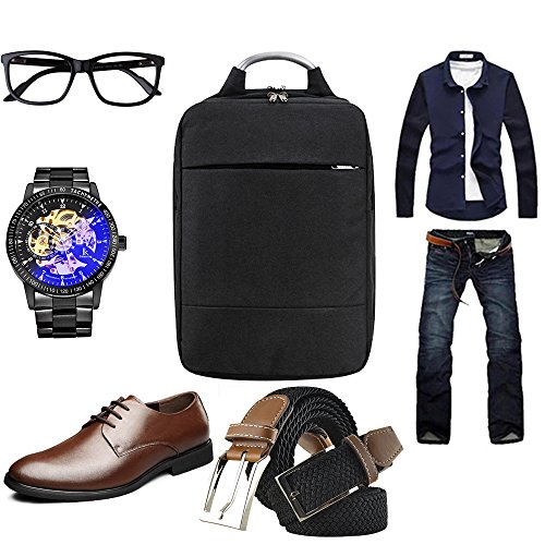 -. Feature : Demensions:17.3 x 13 x 5.1 inches; Fits up to 17.3inches laptop on the market. / Durable Fabric: Water repellent Travel Rucksack made with tear-resistant durable nylon fabric and its dual-access zipper with anti-theft design allows for easy access and increasesd safety. / Multi-Compartments:3 Main zippered pockets(for laptop,clothes,notebooks,textbooks)&4 inner small pockets( specially designed for phone, pen, keys, wallet and other small accesories)&water bottle,foldable umbrella / Padded shoulder straps and back padding offer extra back support and comfort, top loop handle for a secure hold when picking up or moving the backpack. / Multipurpose Knapsack, the thoughtfully designed backpack is perfect for business trips or weekend getaways or for simply heading to the office or school and home again.