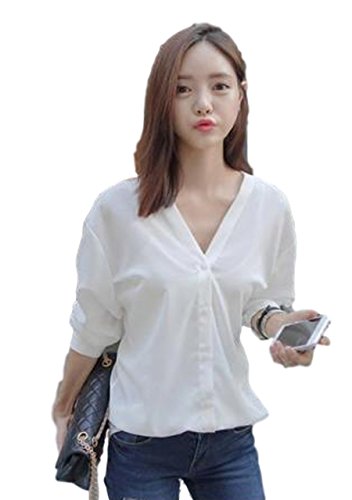 -. Title : (KiKi&Gil) レディース ブラウス Vネック バック リボン シャツ バック リボン Vネック スキッパー 無地 エレガント 通勤 通学 白 M L XL