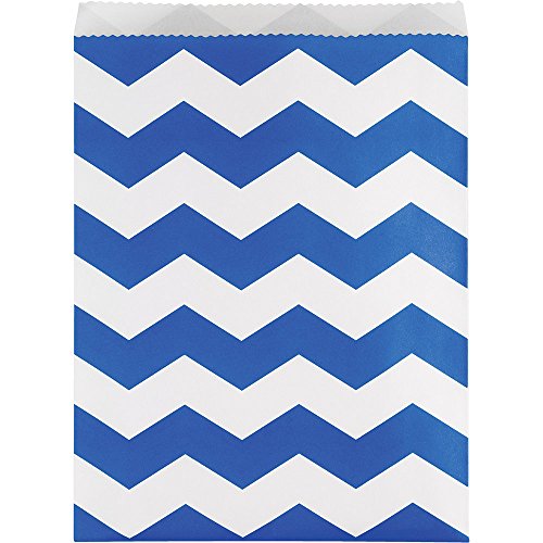 Creative Converting 324483 120-Count Paper Chevron Pattern, Cobalt, Large Treat Bags, Cobalt Chevron