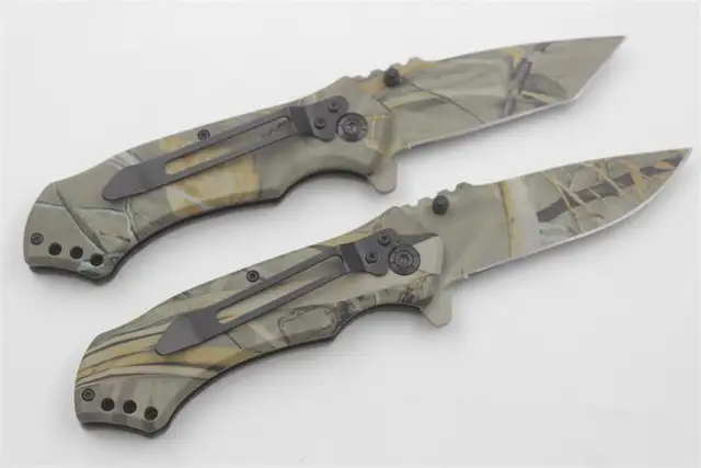 | [해외] 야외 위장 전술 사냥 파이팅 접는 칼 군사 생존 도구 캠핑 과일 칼 |