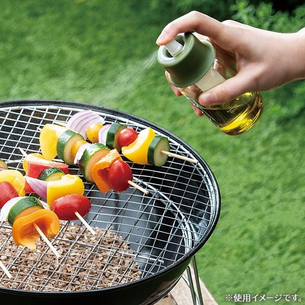 | 少量のオイルをムラなく霧状にスプレーできます。普段のお料理はもちろん、バーベキューなどの野外でもお使いいただけます。 |