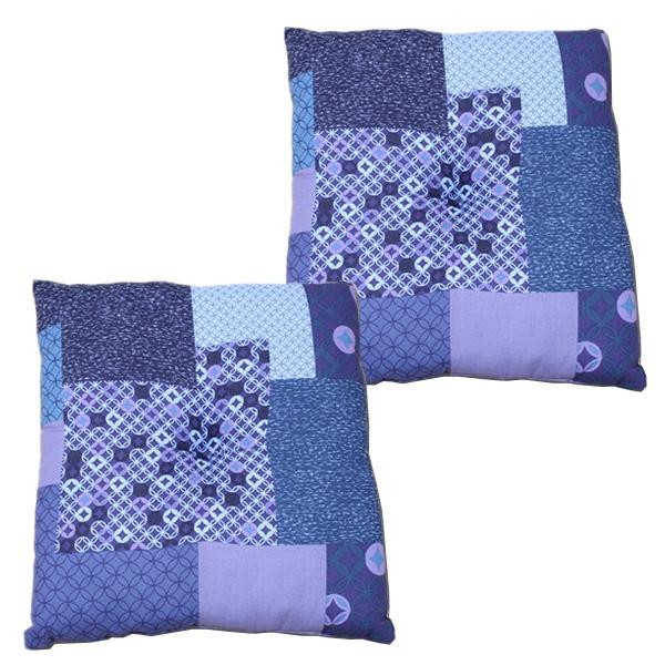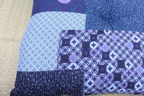 様々な種類の七宝つなぎ模様をパッチワーク風にデザインした座布団です。