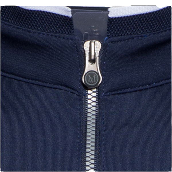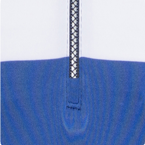 신축성 좋은 소재를 이요한 반집업 스타일로 메쉬조직의쁘띠요꼬 에리를 달아 스포티한 감성줌