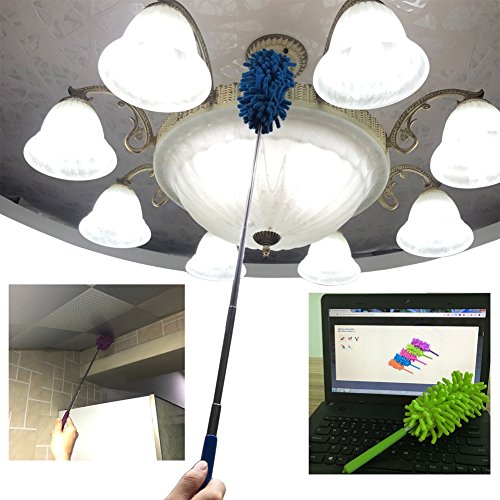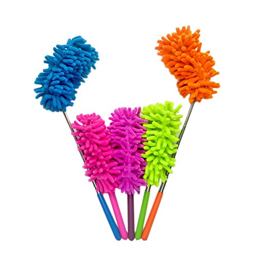 Wimem Extendable Microfiber Dusters | Washable Computer Dusters, Long Reach Ceiling Fan Dusters, Anti-Static Extend Dusters Kit | Green Eco-Friendly Cleaning Supplies (5 PC Retractable Dust Brush Set)