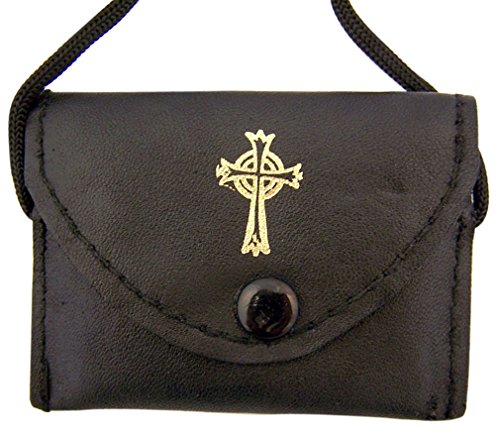 Sheepskin Leather Rosary Burse with Snap Close and Strap, Black, 3 Inch
