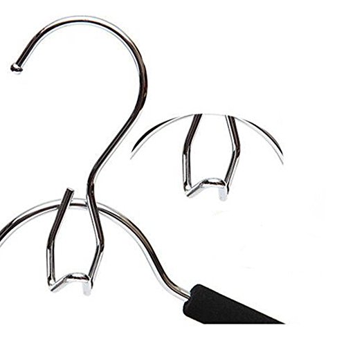 -. Feature : √Non-slip foam padded suit hanger with 2 adjustable clips / √Heavy duty metal clips can keep a tight grip on your pants and slacks / √Polished chrome sturdy construction / √Integrated accessory hook hangs belts or scarves / √Pack of 4 hangers/Pack of 8 hangers