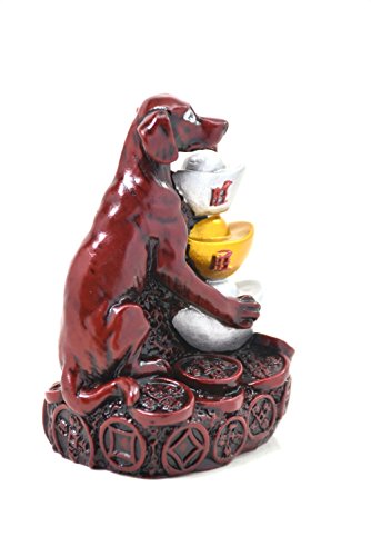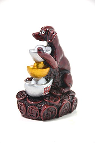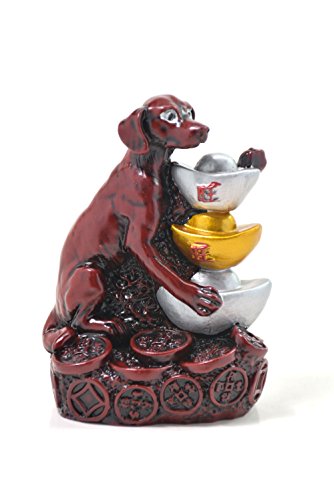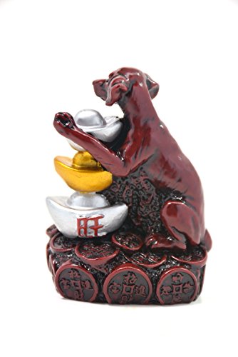 2018 Chinese year of dog Horoscope Chinese Zodiac Handmade Red/goldent Resin Dog With hold 3 ingot Collectible statue Figurine Sculpture