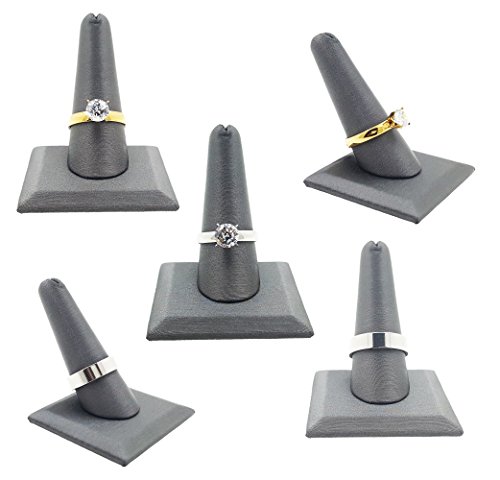 5-Pack Gun Metal Leatherette, Single Finger (2"x2"x2.25"H) Showcase Finger Ring Display Finger Multi-Ring Jewelry Stand