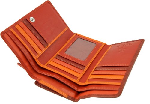 -. Brand : Visconti -. Department : womens -. Feature : Soft Genuine Leather compact trifold wallet from the popular Visconti brand / 12 credit card slots, 2 compartment for notes, 1 window ID / Snap Coin section split into 2 sections / Multi Colored front and back / Contrast and Double Stitching -. ProductGroup : Apparel -. ProductTypeName : APPAREL -. Size : Large -. Title : Visconti RB43 Multi Colored Large Trifold Soft Leather Ladies Wallet & Purse