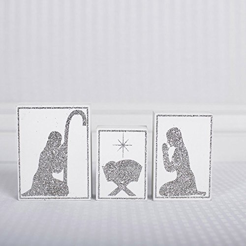 Adams & Co 10x5x1.5 wood block set (NATIVITY) platinum/white