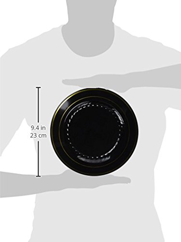 Fineline Settings 12-Piece Silver Splendor with Gold Round China-Like Plate, 9-Inch, Black
