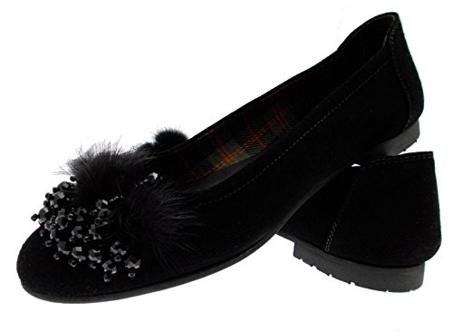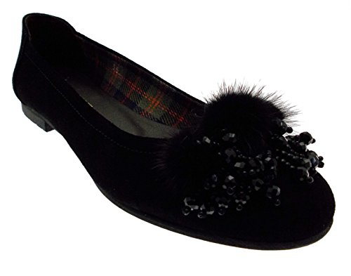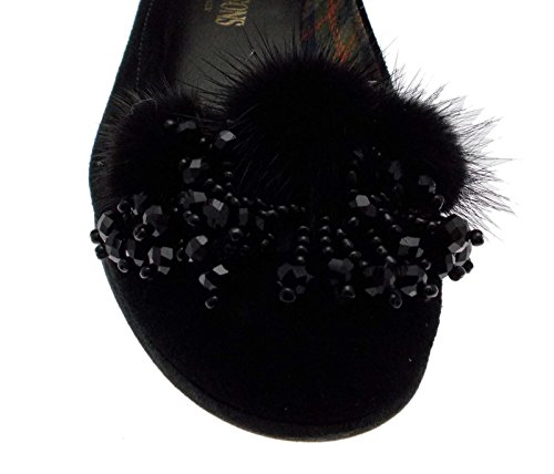 Studio : Calzaturificio R.P Publisher : Calzaturificio R.P Product Description Daisy Duck / dancer Upper of soft black suede with application of mink pompoms and sequins Lining and fabric Rubber bottom Heel of 2 cm. Footwear Henry Sons are built with quality materials, comfortable shapes to ensure the foot maximum comfort and the most flexibility. Henry Sons models are handcrafted in the best tradition of Italian footwear. Made in Italy 100% 0