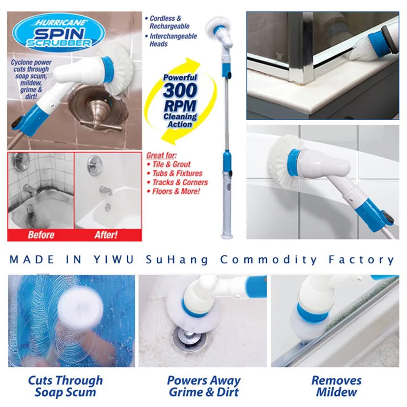 Use your favorite cleaning product – no more harsh or abrasive cleanersProduct details of Turbo Scrub Hurricane Spin Scrubber High Quality Easy Multifunctional Electric Hurricane Spin Scrubber