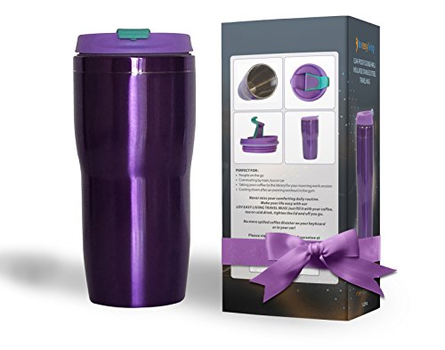 SLEEK AND STURDY: Travel in style with your LovEasyLiving TRAVEL MUG. Made of unbreakable stainless steel in a stylish purple finish, this no. 1 coffee travel mug also makes a perfect gift. It has a high quality plastic lid, mostly of synthetic resin, which is top rack dishwasher safe. Generously sized, this insulated travel mug can also be used for tea as it accommodates a tea ball nicely. Black Friday Sale