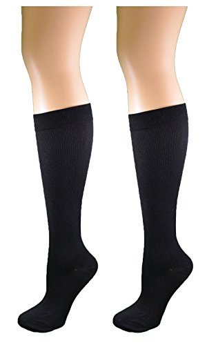 2 Pairs Dr. Motion Compression Knee-Hi Women's Socks Black Size 9-11