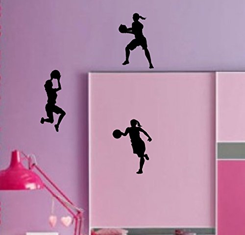 Dnven (9"w X 12"h X 3pcs) Set of 3 Women Girls Basketball Player Silhouette Girls Room Removable Wall Decals Stickers Decors