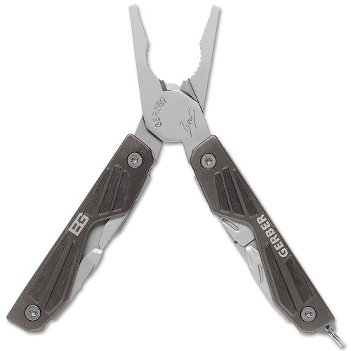 Hang the Compact Multi-Tool on a key chain or carry it in your pocket for easy access. View larger. |  10 stainless steel components have deep grooved nail nicks to make accessing tools easy. View larger. | Bear Grylls and Gerber Team Up The Compact Multi-Tool is part of the Gerber Bear Grylls Survival Series of gear. This collaboration brings together Gerber's 70 years of knife and gear expertise with Bear Grylls' extensive outdoor survival and adventure experience to create a one-of-a-kind line of knives, tools, and gear.From spending time in the British SAS, to scaling Mount Everest, Bear knows what it takes to be a survivor in extreme situations and multiple environments. Now he brings that knowledge to the creation of a range of items that let you make the most of your outdoor adventures. Lightweight, Compact Design with Easy-to-Access Components Lightweight and compact, with an open length of 4-3/10 inches, closed length of 2-1/2 inches and a 3-ounce body, the Compact Multi-Tool gives you the benefit of multiple applications in one easy-to-use tool that you can hang on a key chain or carry in your pocket.  Bear Grylls' Pocket Survival Guide | 10 Components in a Single Compact Tool The Compact Multi-Tool offers 10 stainless steel components, including needle nose pliers, wire cutters, both fine-edge and serrated knives, a Phillips screwdriver, small and medium flat drivers, a lanyard ring, a bottle opener, and tweezers. External components and nail nicks make for |