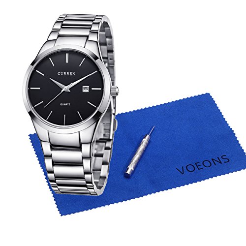 -. Title : Voeons Men's Watches Quartz Auto Date Silver Stainless steel Strap Watch